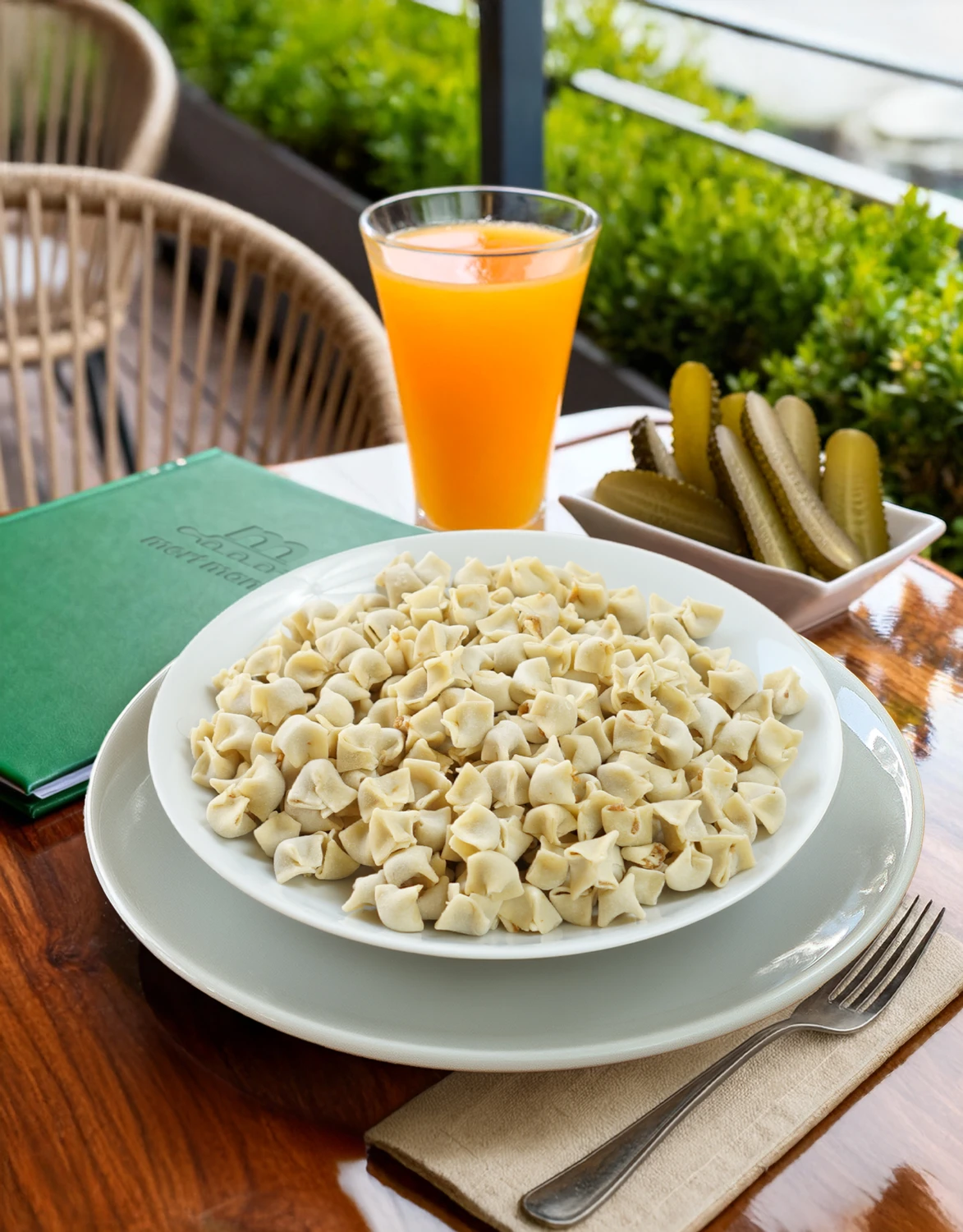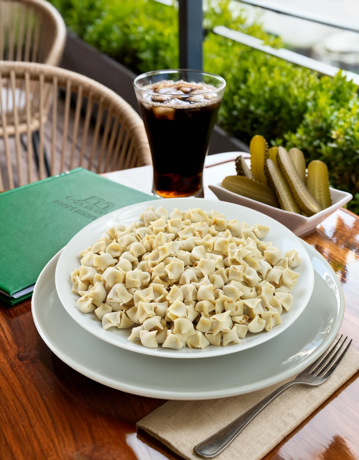 Her lokmada gevrek doku, iç dolguda yoğun lezzet; ustalıkla hazırlanmış özel bir mantı yorumu.